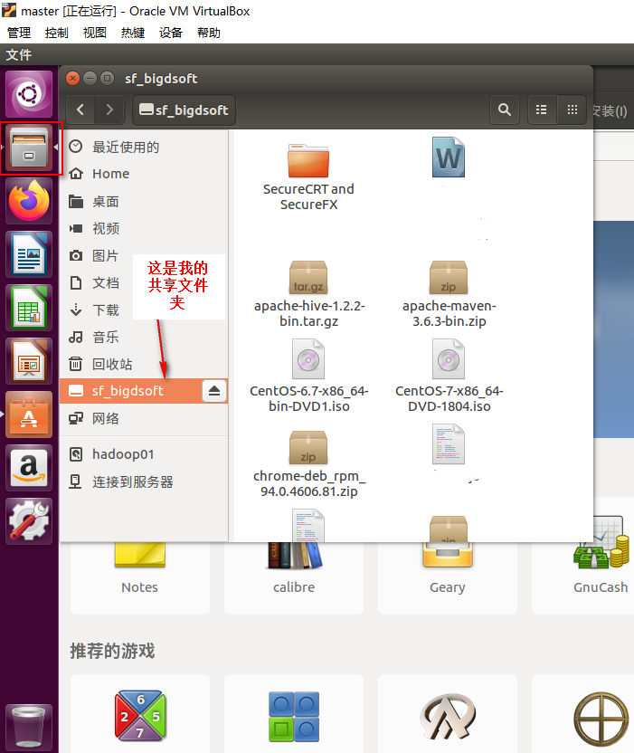 4.配置好的共享文件夹位于/media,系统自动加上前缀"sf_"。
