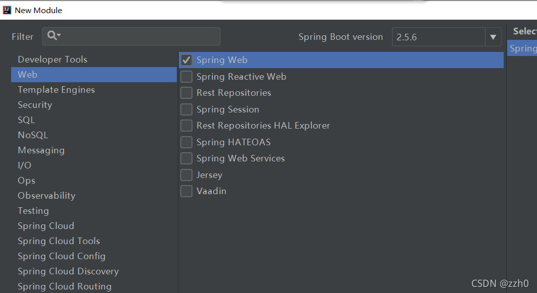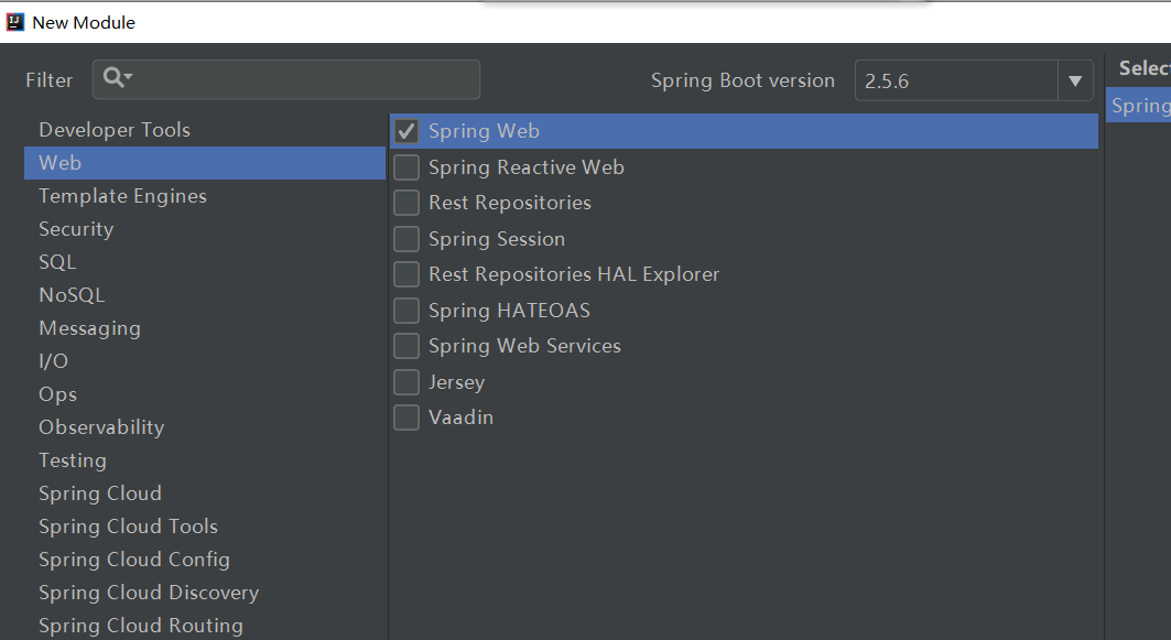 然后 new module,我这里就选了Spring Web,因为只是做简单的网页反馈