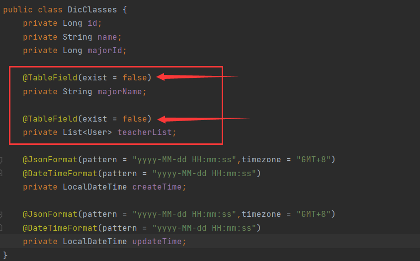 首先从实体类开始,数据库中没有的字段,但是我又要用到,应该这样做