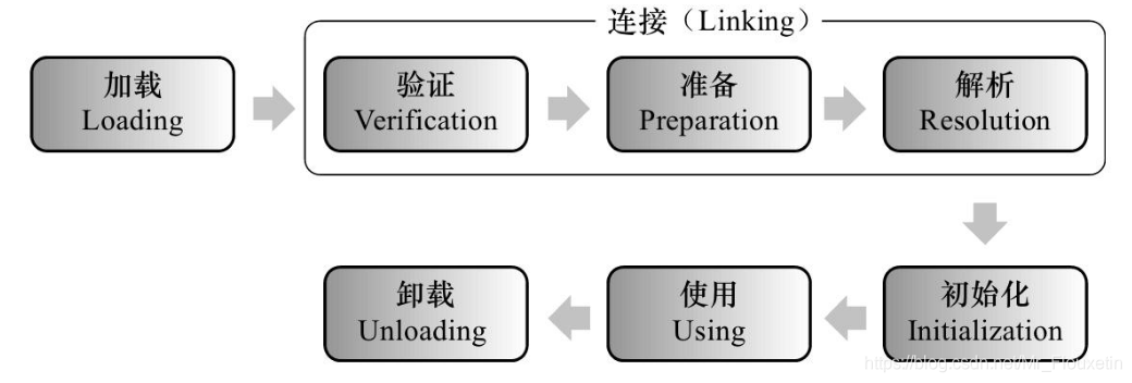 - 加载阶段与连接阶段的部分内容交叉进行,加载阶段尚未完成,连接阶段可能已经开始了。但这两个阶段的开始时间仍然保持着固定的先后顺序。