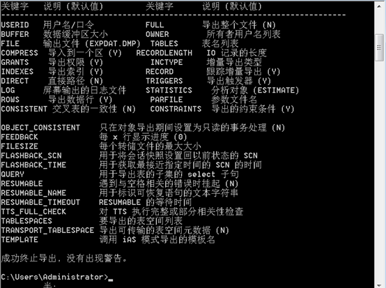 exp 登录名称/用户密码@服务命名 FILE=文件存储的路径以及名称 log=日志存储的路径以及名称 FULL=Y(表示导出全部数据,如视图、索引关联关系等等全部的东西)