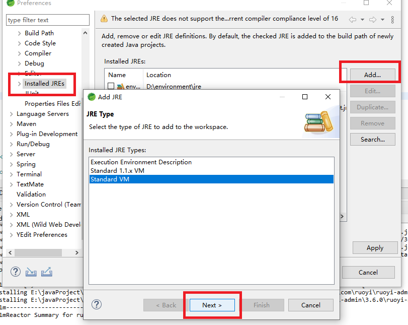 在后端打包时一致没法完成,后面发现若依的java环境时需要用到JDK来进行,平时可能我们用到的是JRE,改成JDK的时候就行了: