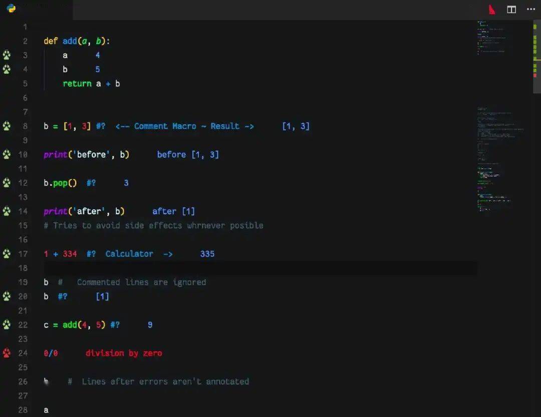 也就是说,你可以在 VSCode 中体验 Python 解释器里面的那种所见即所得的体验,功能上和 AREPL for Python 有点像。