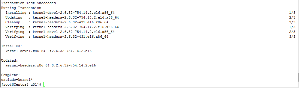 #yum -y install kernel-devel kernel-headers && echo exclude=kernel*