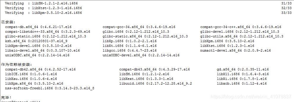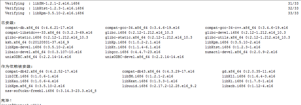 #yum -y install compat-db compat-gcc-34 compat-gcc-34-c++ compat-libstdc++-33 glibc-* glibc-*.i686 libXpm-*.i686 libXp.so.6 libXt.so.6 libXtst.so.6 libgcc_s.so.1 ksh libXp libaio-devel numactl numactl-devel unixODBC unixODBC-devel