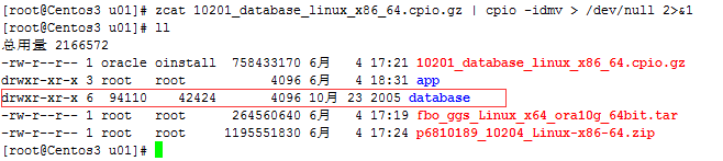 #zcat 10201_database_linux_x86_64.cpio.gz | cpio -idmv > /dev/null 2>&1