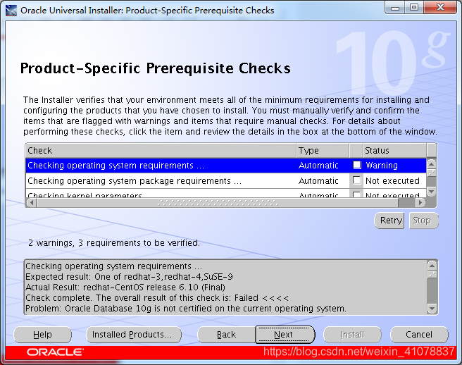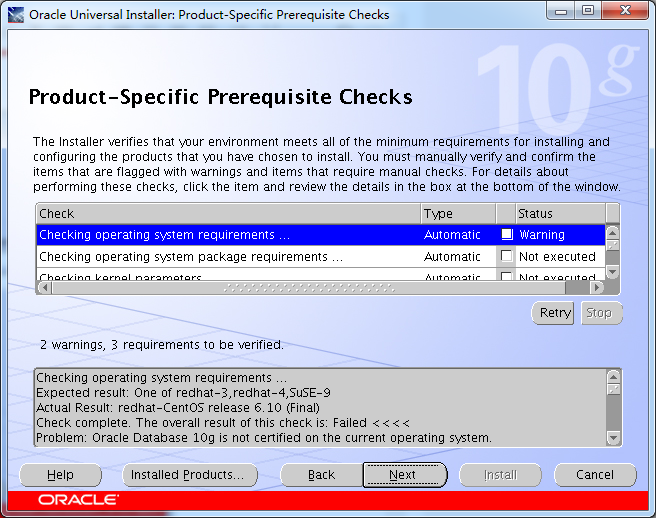 八.产品特定的先决条件检查(注:一般会出现warning),默认即可,点击Next: