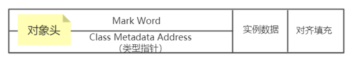 intanceOop的内存布局是从每个对象上都有的两个机器字的头部开始的。其中的第一个是mark word,它是一个指针,指向特定于该实例的原数据。下一个是class word,它指向类级别的元数据。