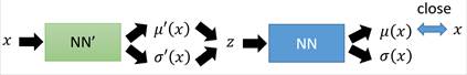 构建一个编码器Encoder如下,它可以求出一个数据分布q(x|z),来表示关于x的数据分布,用于推进P(x|z)的求解: