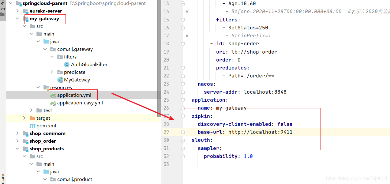 父工程引入Sleuth依赖,每一个都要加上依赖(product,order,gateway)