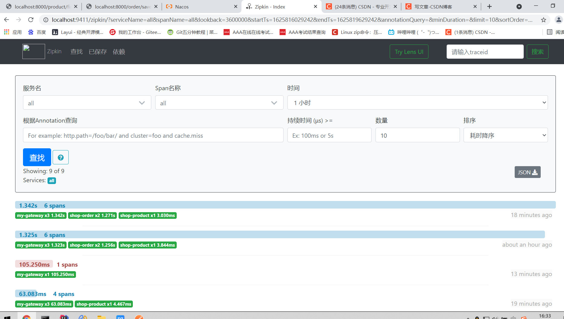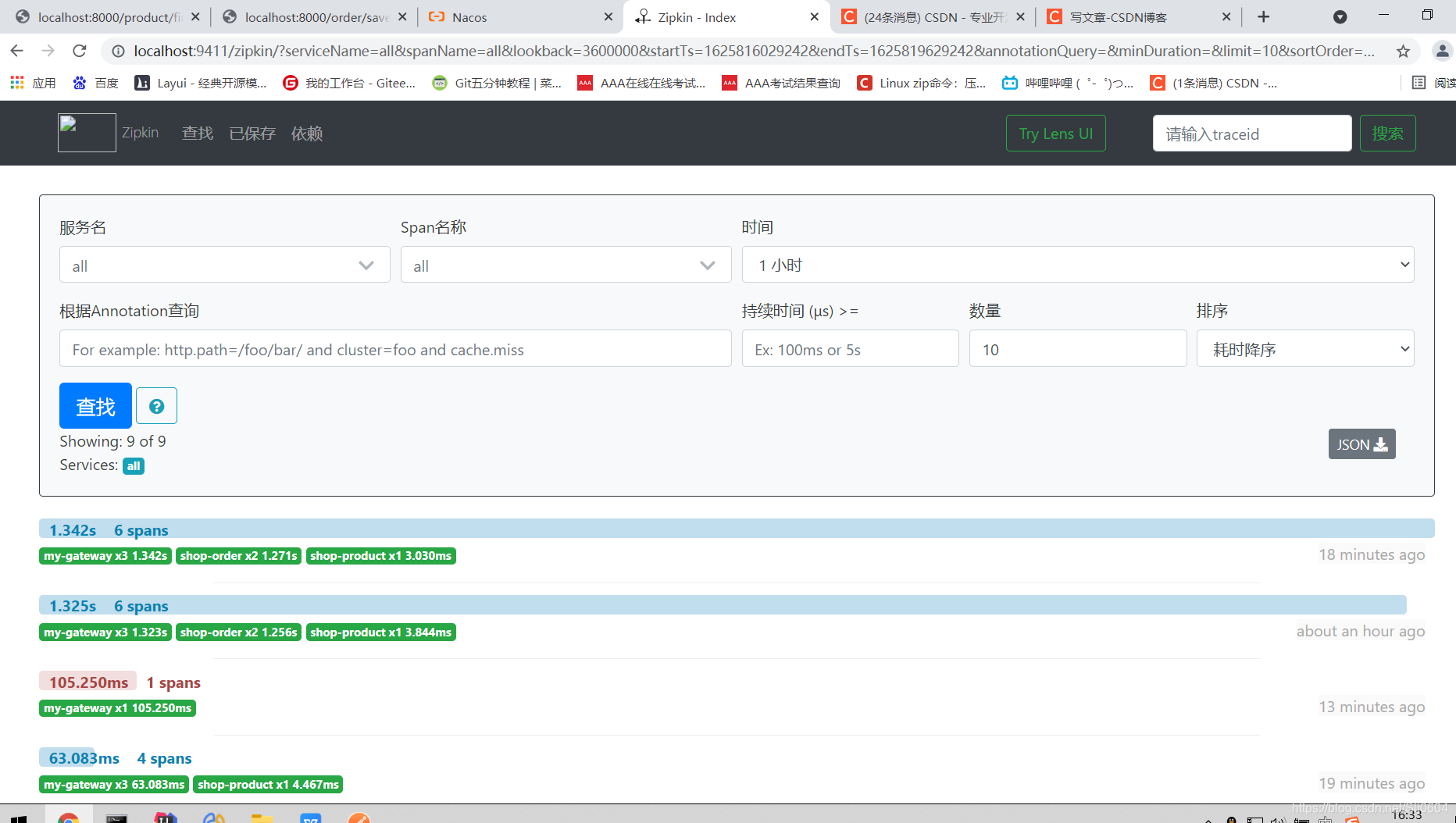 访问zipkin的UI界面,观察效果