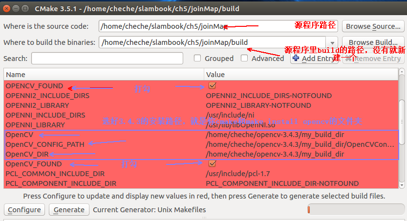 (2)cmake时的找不到opencv的路径问题;