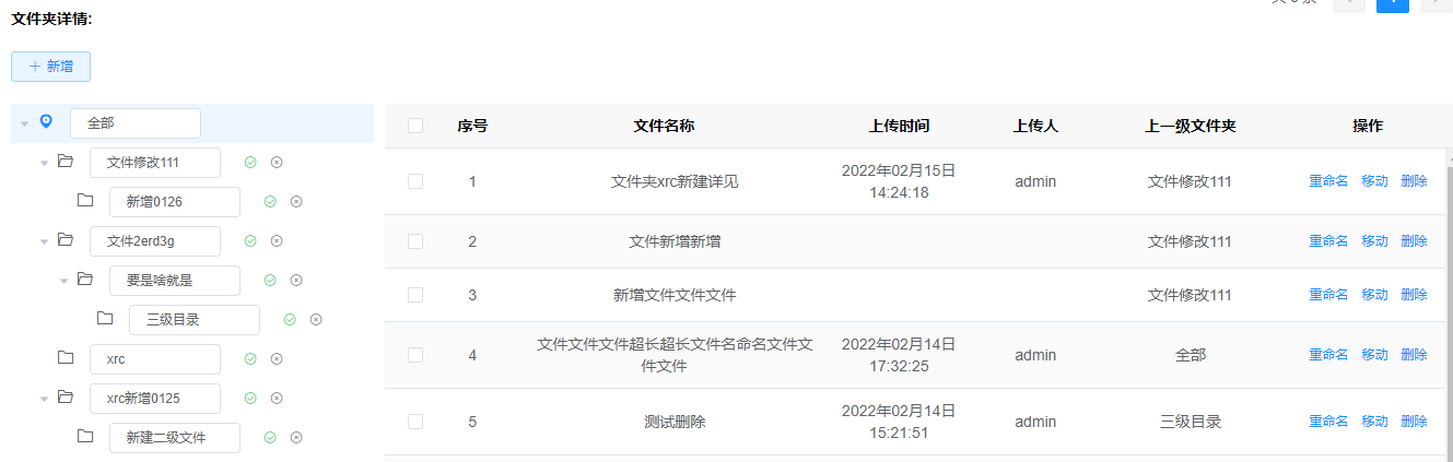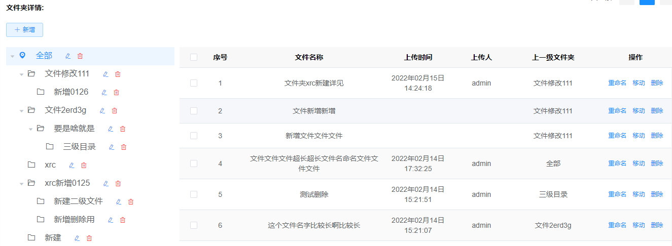1. 【新增】点击文件夹后->点击新增,会在选中的文件夹下新建文件夹目录;如果选中‘全部’或者不选,则直接在全部目录下新建文件夹目录。