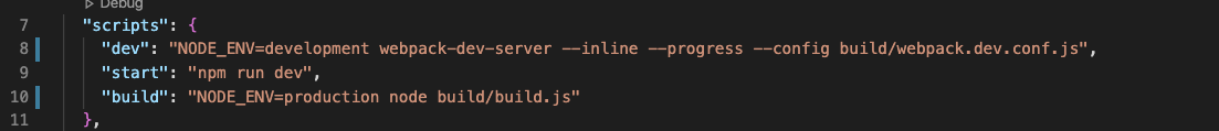 process.env.NODE_ENV === 'production'在VUE项目中的package.json 设置