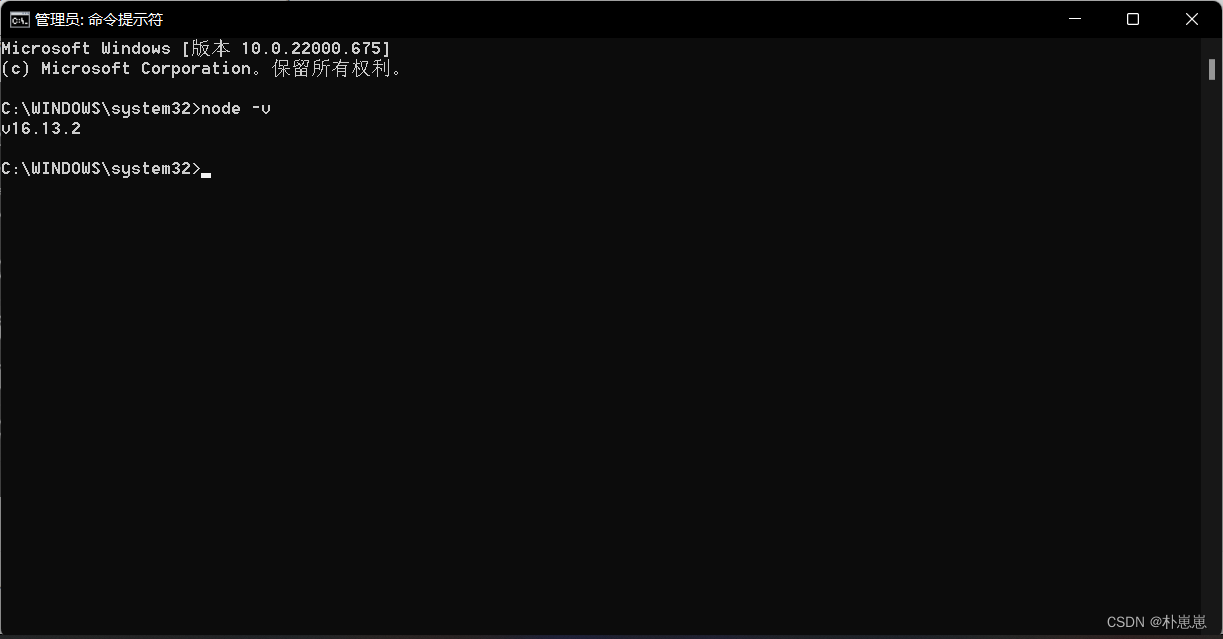 node -v我这里显示v16.13.2 就是已经安装了node,还是比较新的版本,我一般开发用v14的多,所以我等下改成14版本的,可以不改,不过有时候开发,下载依赖会有版本冲突。
