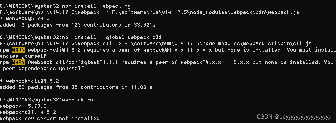 npm install --global webpack-cli安装成功后可使用webpack -v查看版本号。