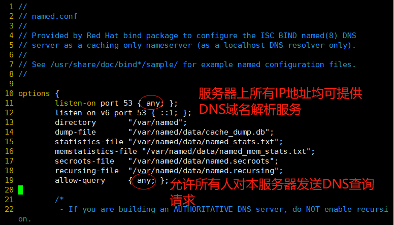 (2)修改主配置文件/etc/named.conf两个地方为{any}