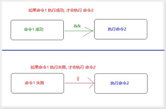 命令1 && 命令2 | 如果 命令1执行成功了, 才执行 命令2 |