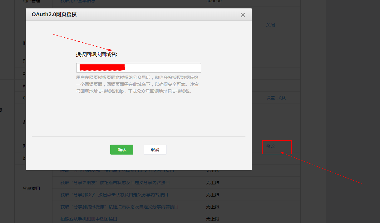 登陆微信的时候报 redirect_uri 参数错误 是登陆微信 授权的时候 缺少配置 如下图