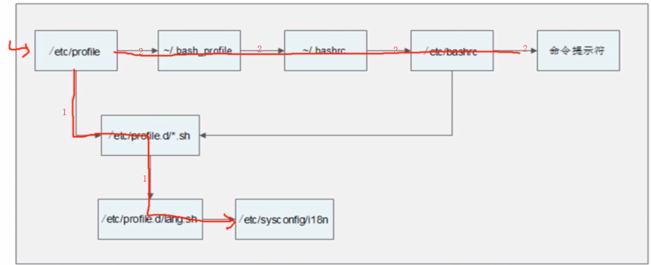 线路一加载完毕后 在从 /root/.bash_profile 开始加载,也就是图中的线路2,最后一个加载的文件就是 /etc /bashrc这个文件。