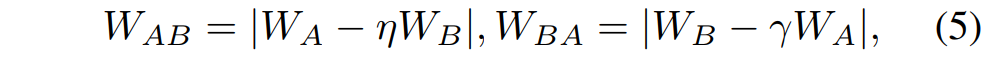 表示绝对值。这两个权重表示考虑到了图像动态的相关信息量,以便更好地将自身与比较图像区分开来。我们使用减法运算来计算交互。我们还尝试了其他操作,如加法、乘法或串联,但获得的性能稍低。通过减法,CCI权重矩阵抑制了两幅图像之间的共性,并突出显示了两幅图像之间不同的通道关系。