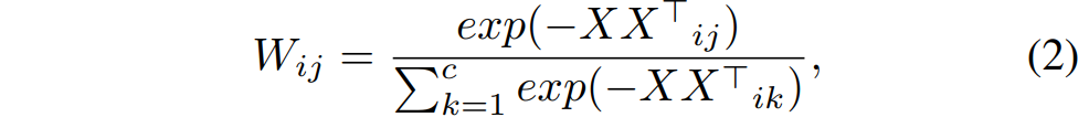 。接着给它添加一个负号,利用一个softmax函数来获得权值矩阵: