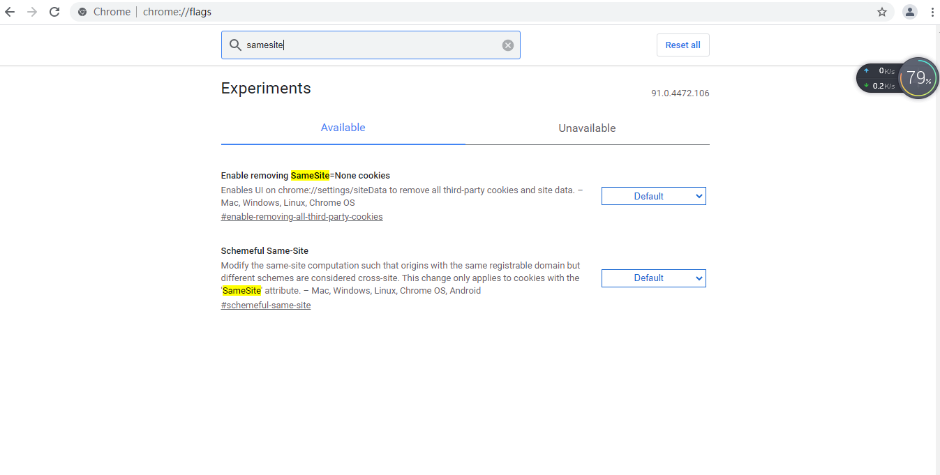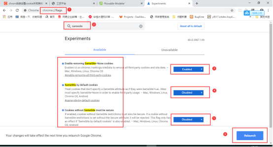 2.2 后来有一天,自动登录突然又不好用了。崩溃……打开chrome://flags/,发现几个关于sameSite的属性SameSite by default cookies, Cookies without SameSite must be secure根本找不到了,再度崩溃……