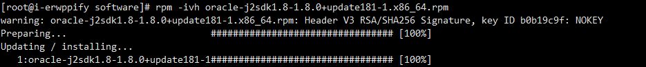 rpm -ivh oracle-j2sdk1.8-1.8.0+update181-1.x86_64.rpm