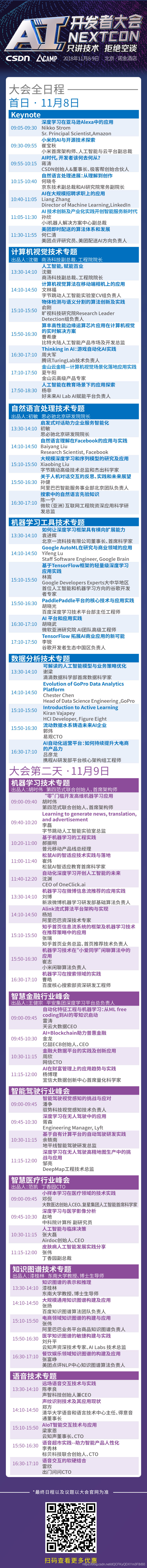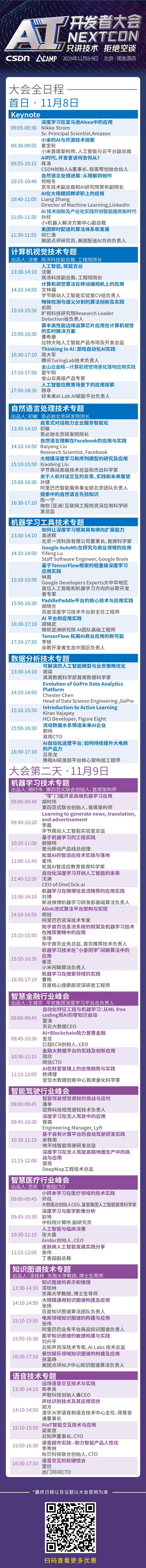 2018 年 11 月 8-9 日,由中国 IT 社区 CSDN 与硅谷 AI 社区 AICamp 联合出品的2018 AI 开发者大会(AI NEXTCon)将于北京召开。