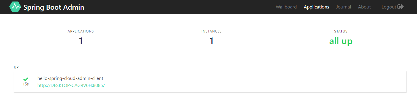 从图中可以看到,我们的 Admin Client 已经上线了,至此说明监控中心搭建成功