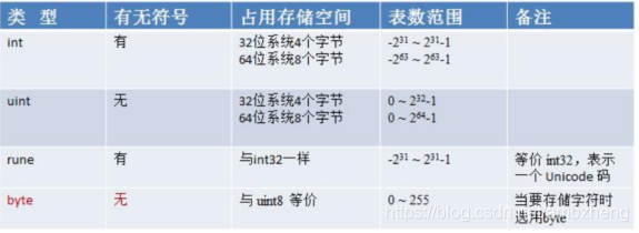 - 数值型:int,int32,int64 (rune是int32的别名,代表字符的Unicode编码)