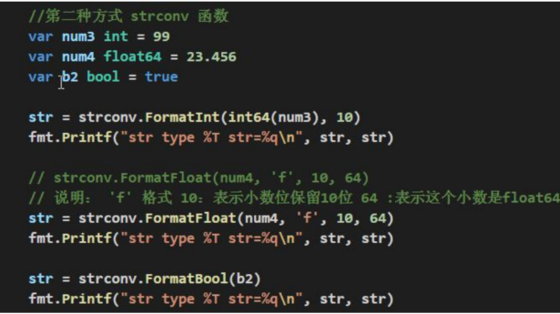 string = fmt.Sprintf("%d", num) 第一个参数的类型根据第二个参数类型而定