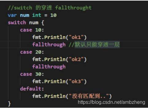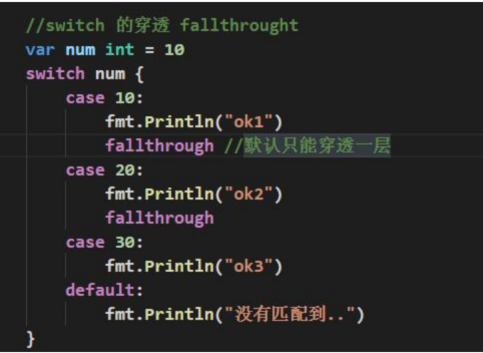 switch穿透,会继续向下执行一个case,但只能穿透一层
