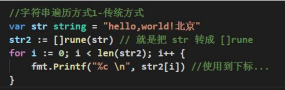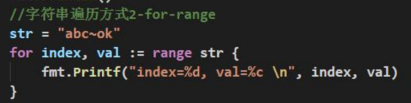 }- 使用for-range来遍历,即使有中文也可以
