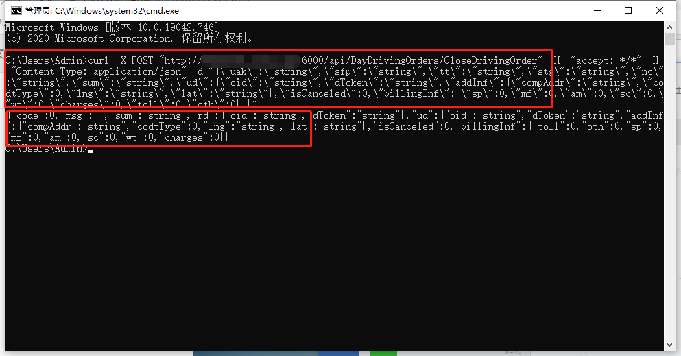 第一个红框是我的输入内容,第二个红框是返回数据。自此,证明成功连通。