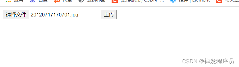<%-- Created by IntelliJ IDEA. User: T440s Date: 2021/12/20 Time: 16:36 To change this template use File | Settings | File Templates. --%> <%@ page contentType="text/html;charset=UTF-8" language="java" %> <html> <head> <title>Title</title> </head> <body> <form action="${pageContext.request.contextPath}/book/upload" method="post" enctype="multipart/form-data"> <input type="file" name="xxx"> <input type="submit" value="上传"> </form> </body> </html>第四步:在BookController中追加后台代码用于接受页面传过来的参数