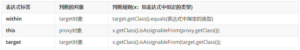 @Pointcut("@target(Ann1) && !@target(Ann2)") // 匹配目标类上有Ann1注解但是没有Ann2注解