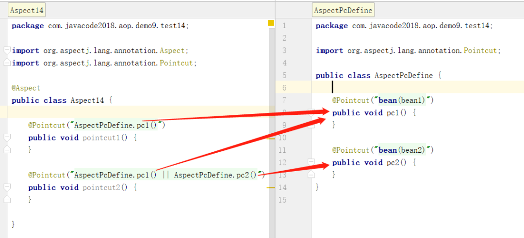 @Pointcut("com.javacode2018.aop.demo9.test14.AspectPcDefine.pc1() || com.javacode2018.aop.demo9.test14.AspectPcDefine.pc2()")