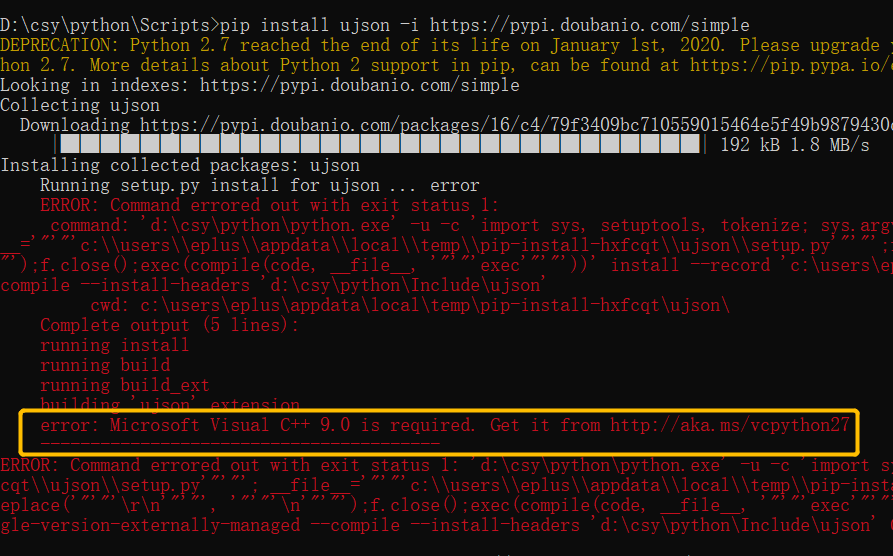 9.如果电脑没有安装vc++ 9.0 安装ujson会报错,解决办法