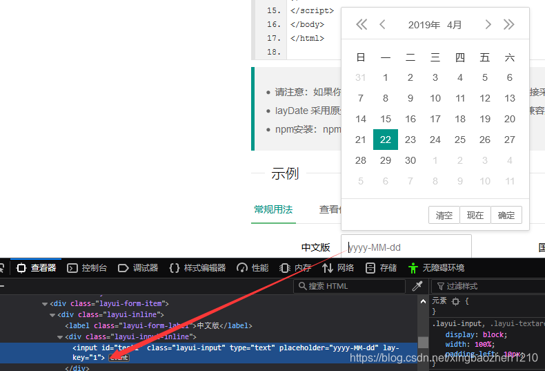 我们在每次动态生成laydate组件时, laydate框架会给input输入框增加一个lay-key="1", 这样就导致了多个laydate 的inpute框都有lay-key="1"这个属性 . 所以就不起作用了