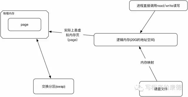 通过mmap,进程像读写硬盘一样读写内存(当然是虚拟机内存),也不必关心内存的大小有虚拟内存为我们兜底。
