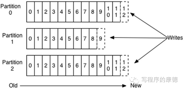 上图就展示了Kafka是如何写入数据的,每一个Partition其实都是一个文件,收到消息后Kafka会把数据插入到文件末尾(虚框部分)。