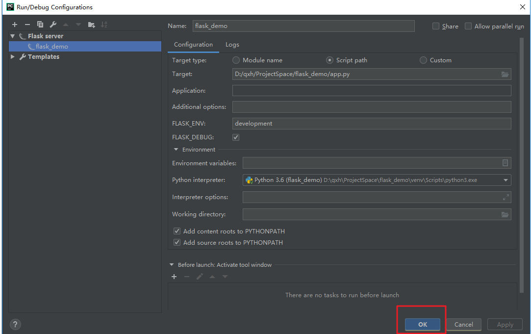 2.2 FLASK_DEBUG选项打勾