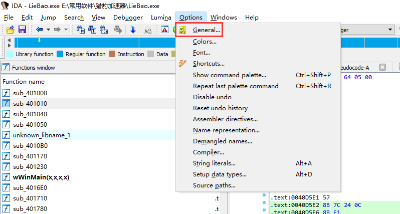 打开菜单 Options - General