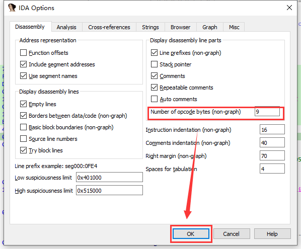 在 Number of opcode bytes (non-graph) 填写 9 ,点 OK 完成