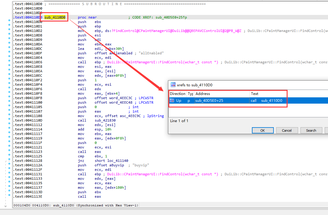 右键函数头再按 X ,找到调用的代码