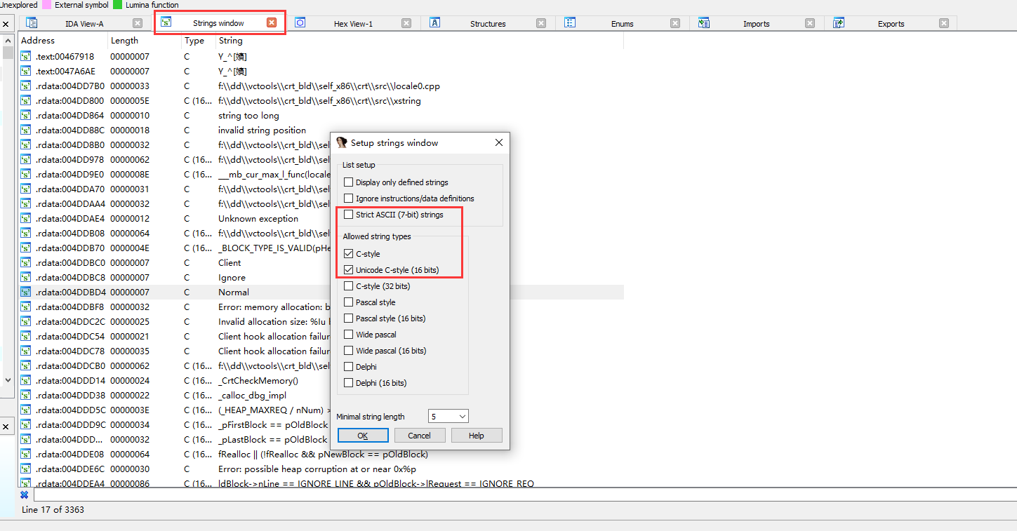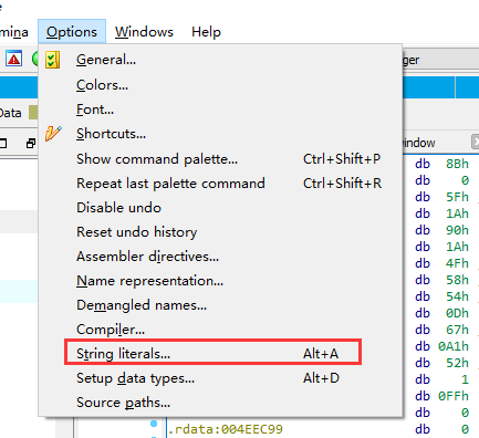 打开菜单 Options - String Literals…
