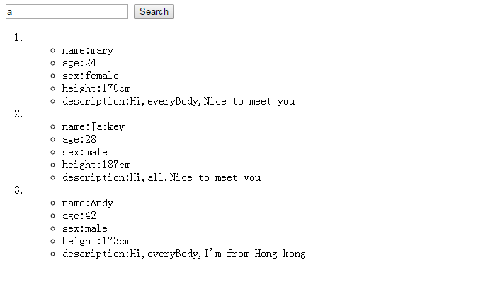实现的效果就是输入关键字,会根据name进行搜索,如下所示