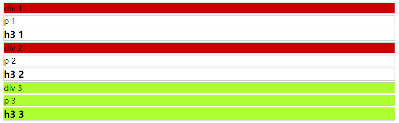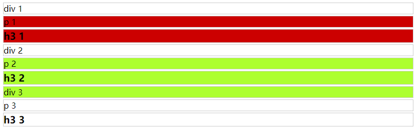 - 找到每个类型对应的的所有元素,例如所有的div,p,h3