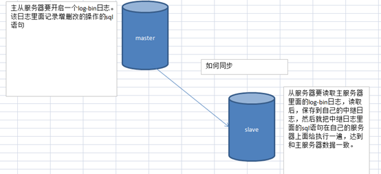 mysql中有一种日志,叫做bin日志(二进制日志),会记录下所有修改过数据库的sql语句。主从复制的原理实际是多台服务器都开启bin日志,然后主服务器会把执行过的sql语句记录到bin日志中,之后把这个bin日志发给从服务器,在从服务器再把bin日志中记录的sql语句同样的执行一遍。这样从服务器上的数据就和主服务器相同了。